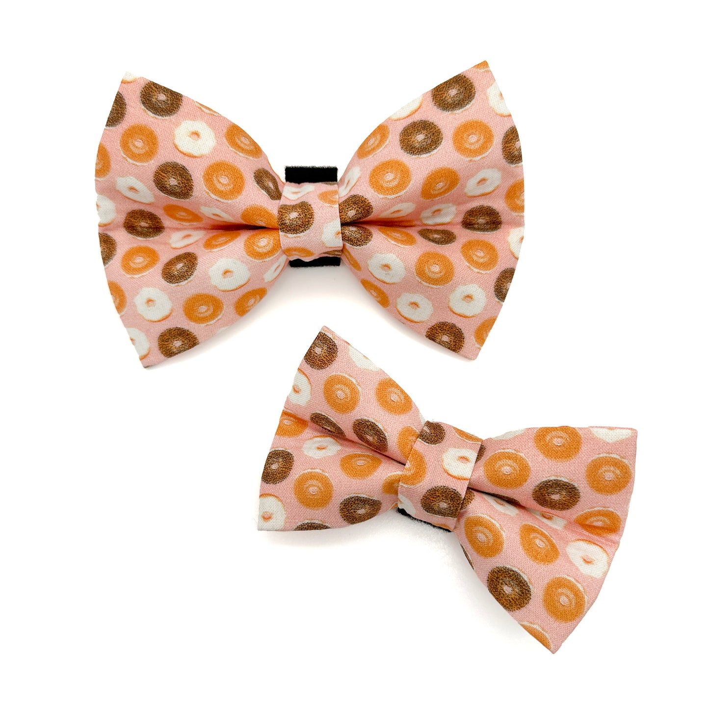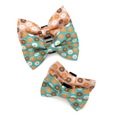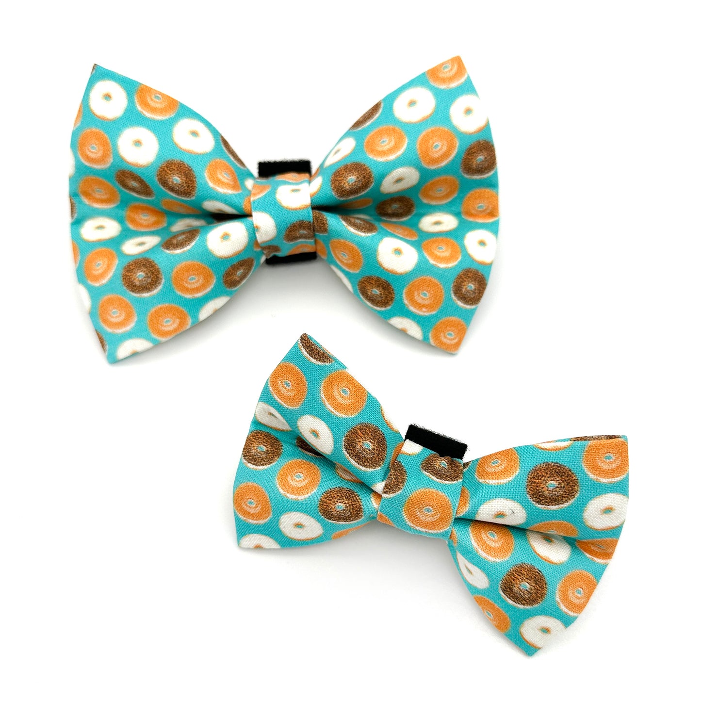Our high quality dog bow ties are made to last. They hold their shape and can be worn multiple times for different occasions. The bow tie is made with a velcro fastening strap. The strap is also adjustable and fits collars up to 1.5" wide. You can effortlessly secure or remove the bow tie from your pet's collar without removing the collar itself!