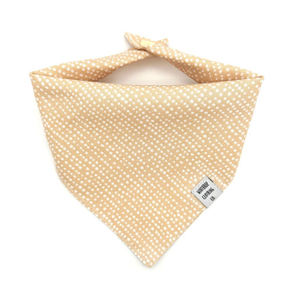 Our dog bandanas feature snaps that secure the end ties in place. Each dog bandana is top stitched and double sided. Print placement will vary for each dog bandana. Handmade with love in the U.S.A.