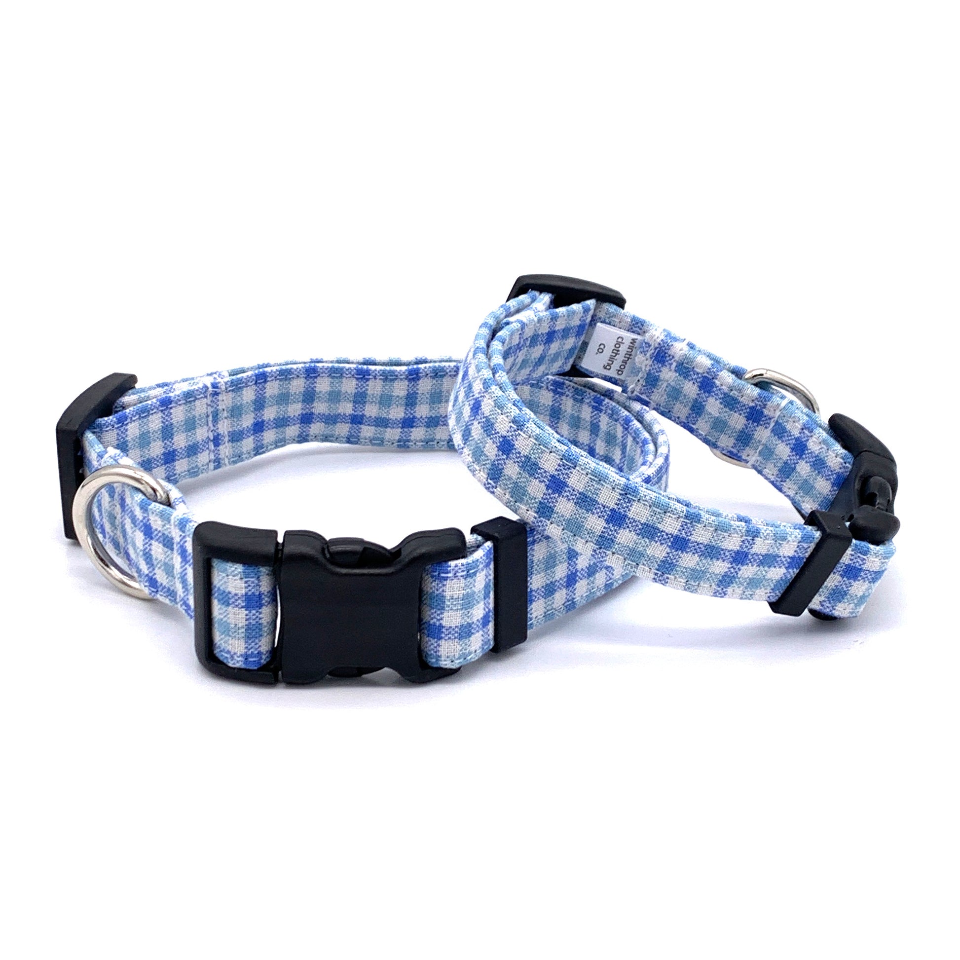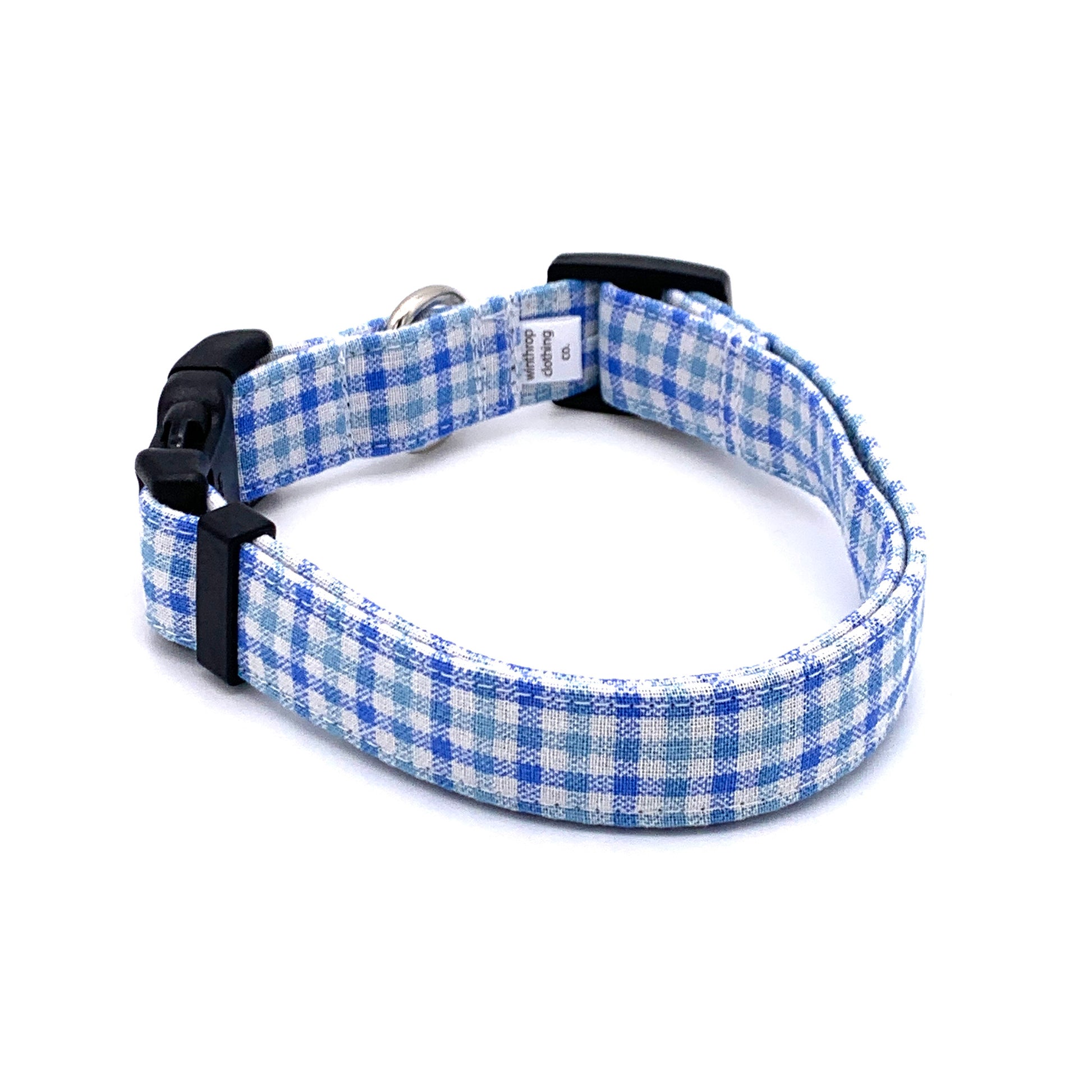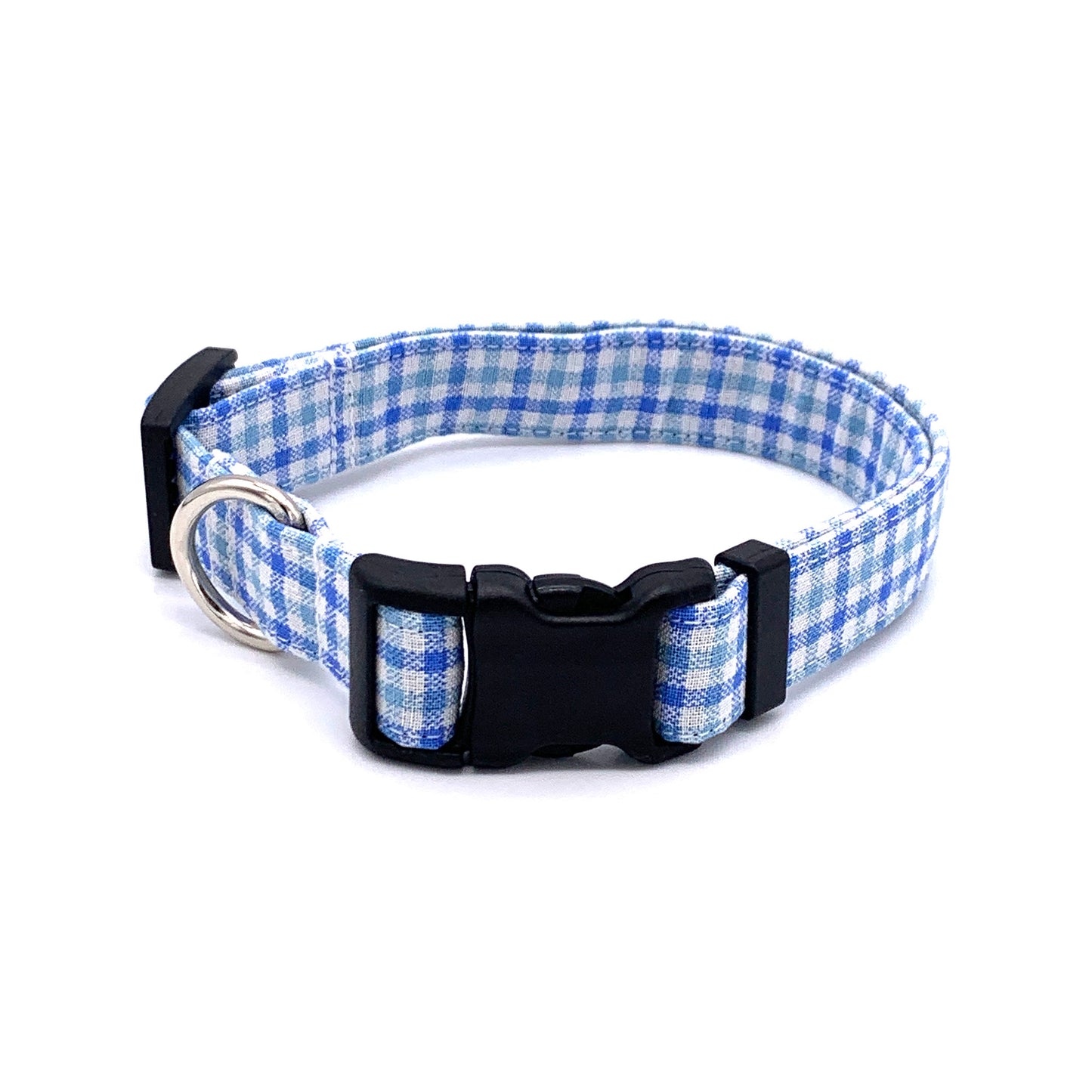 Blue Gingham Dog Collar