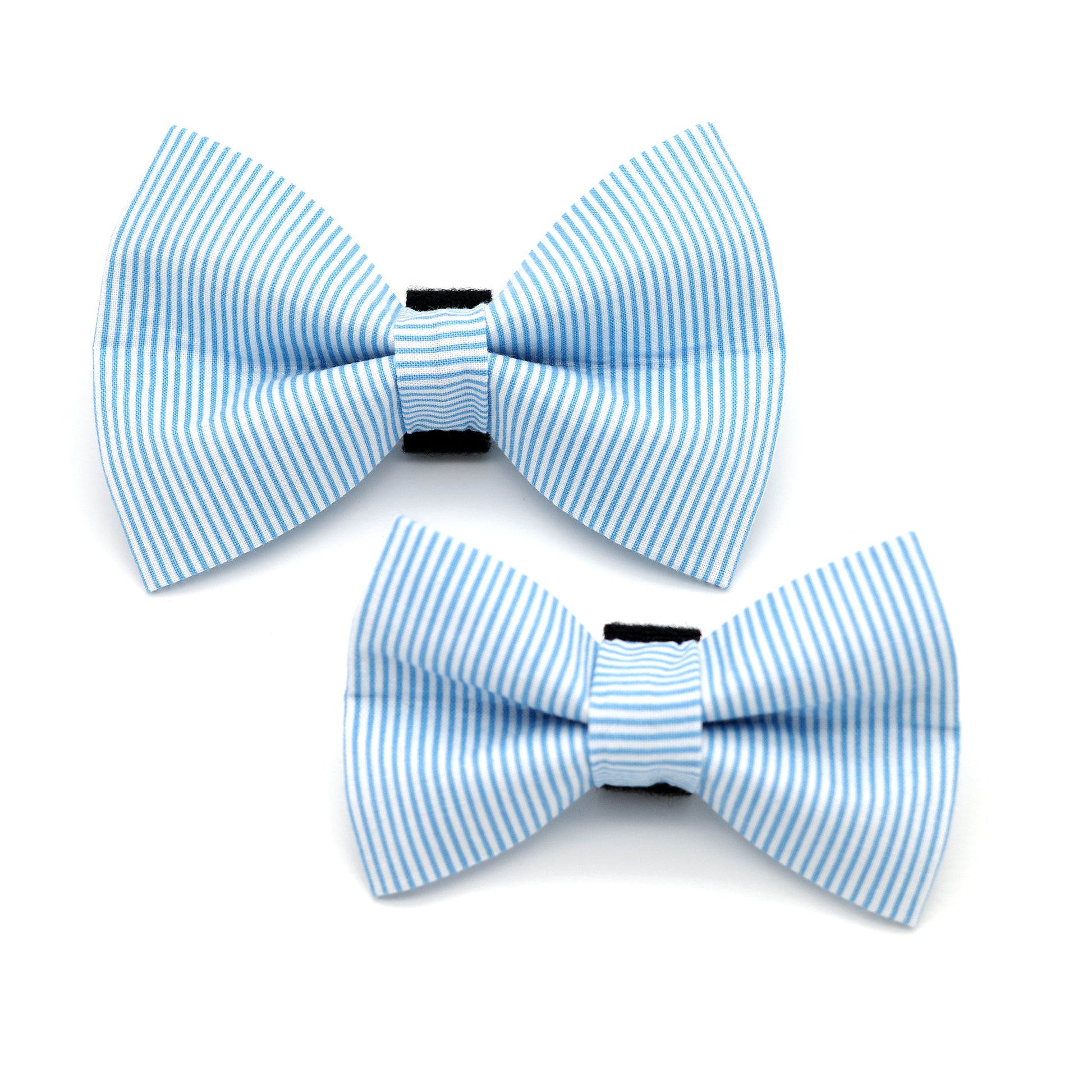 Our high quality dog bow ties are made to last. They hold their shape and can be worn multiple times for different occasions. The bow tie is made with a velcro fastening strap. The strap is also adjustable and fits collars up to 1.5" wide. You can effortlessly secure or remove the bow tie from your pet's collar without removing the collar itself!