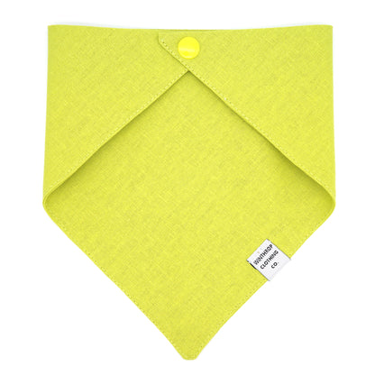 Our dog bandanas feature snaps that secure the end ties in place. Each dog bandana is top stitched and double sided. Print placement will vary for each dog bandana. Handmade with love in the U.S.A.