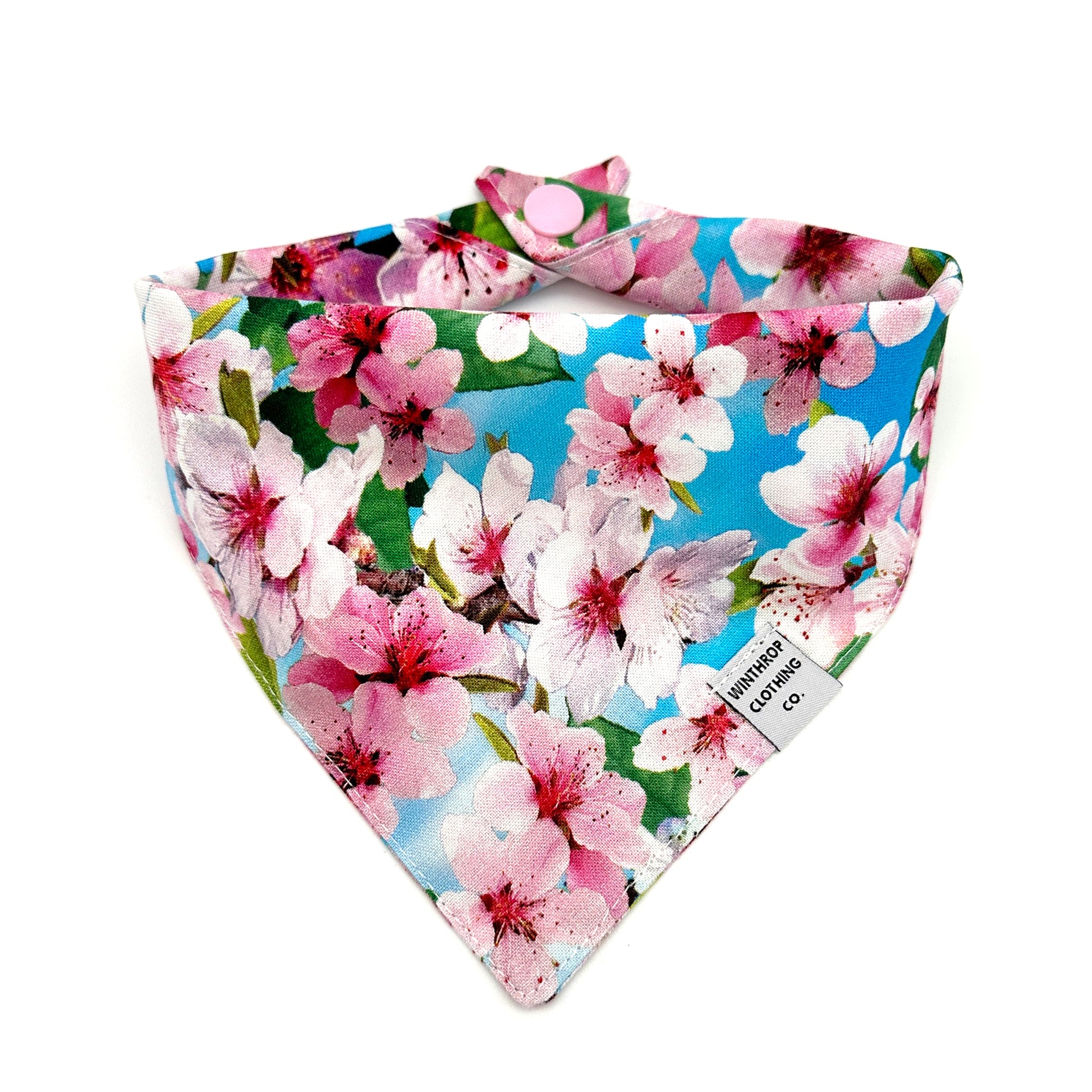 Our dog bandanas feature snaps that secure the end ties in place. Each dog bandana is top stitched and double sided. Print placement will vary for each dog bandana. Handmade with love in the U.S.A.