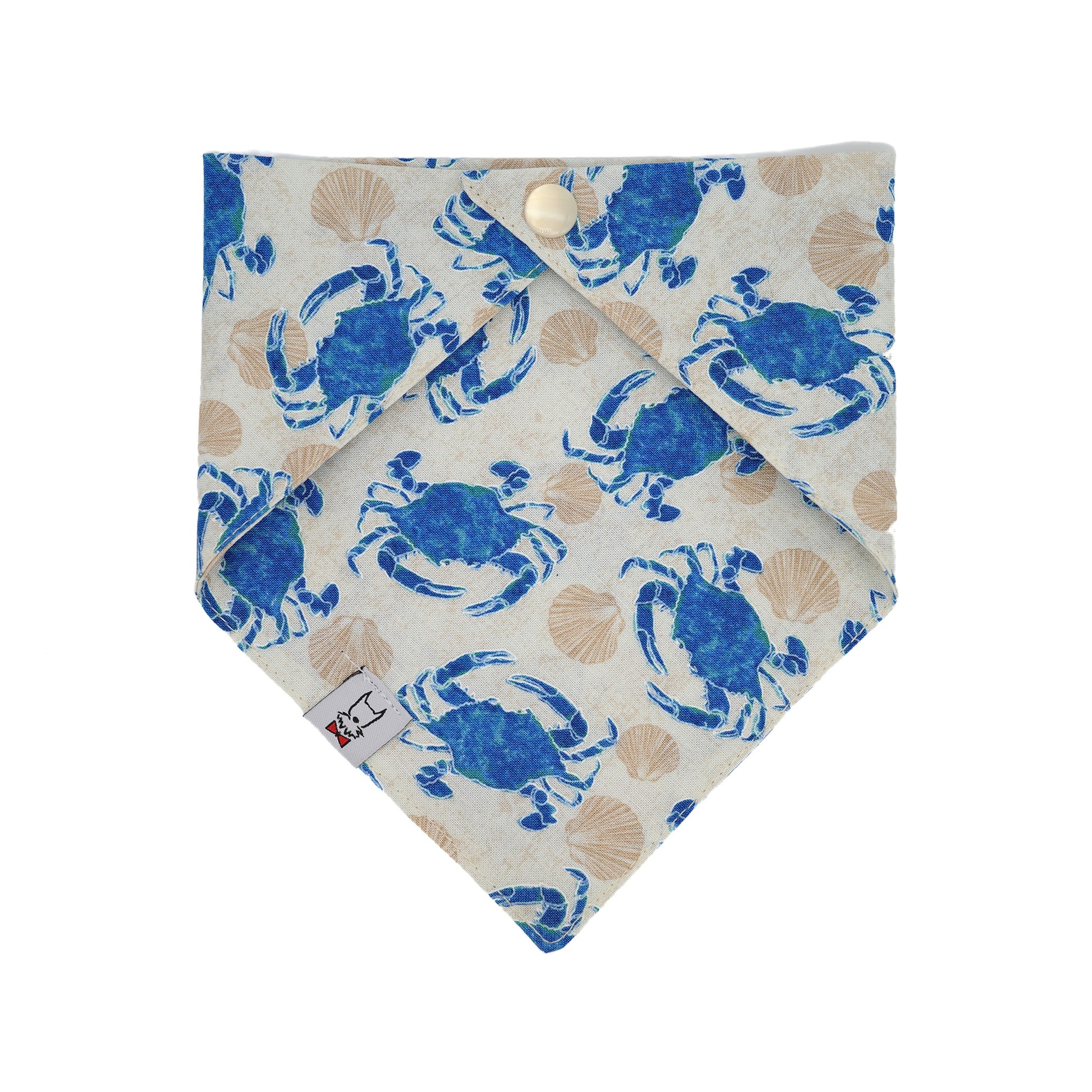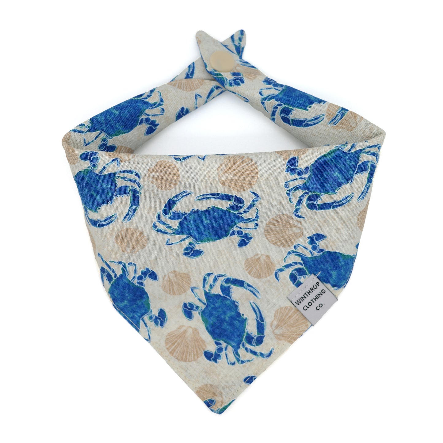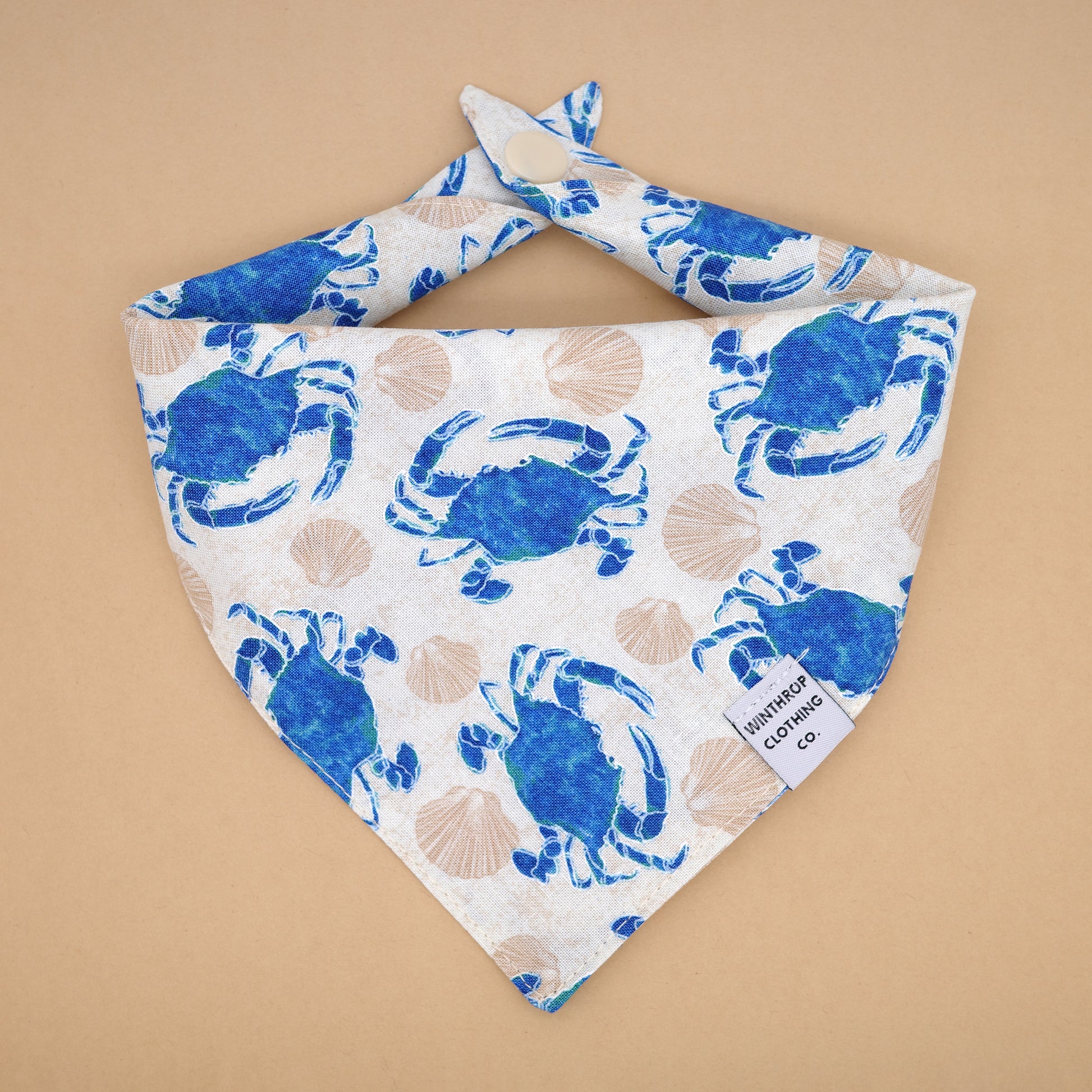 Our dog bandanas feature snaps that secure the end ties in place. Each dog bandana is top stitched and double sided. Print placement will vary for each dog bandana. Handmade with love in the U.S.A.