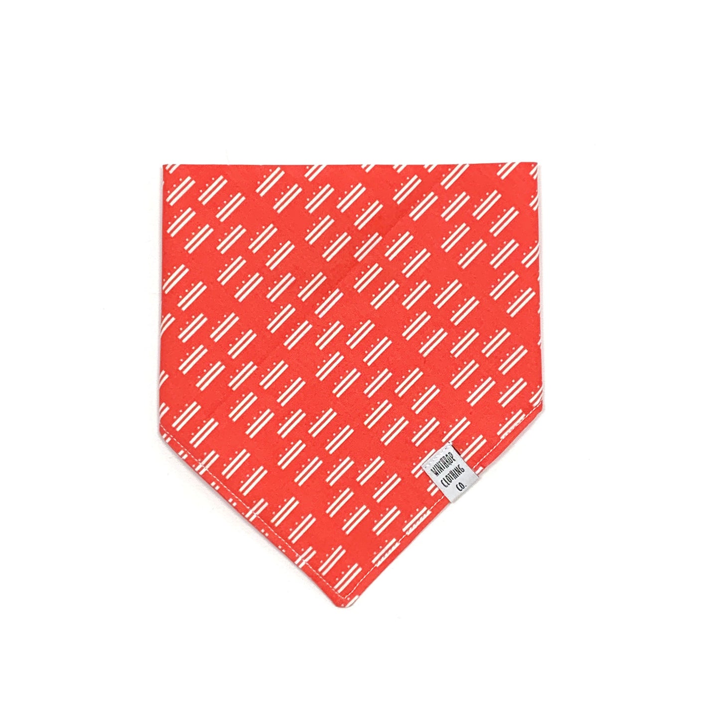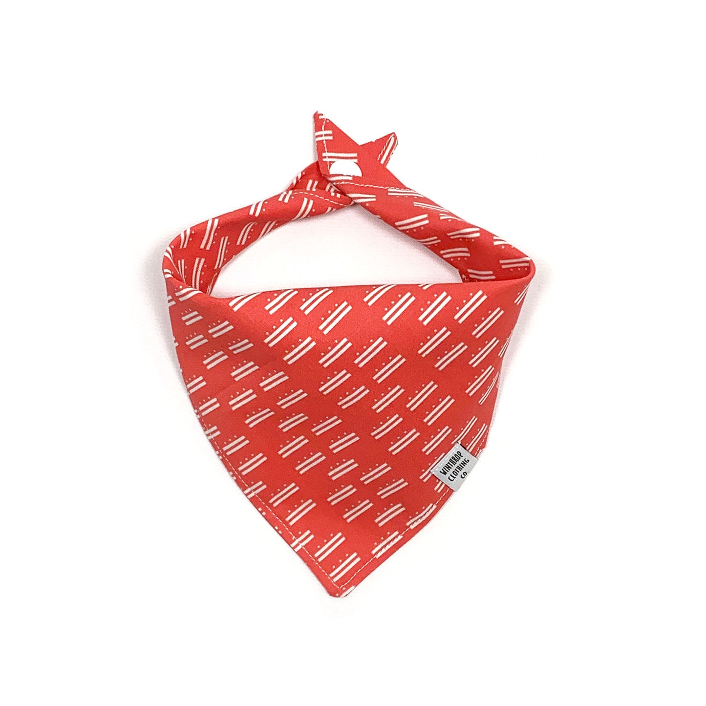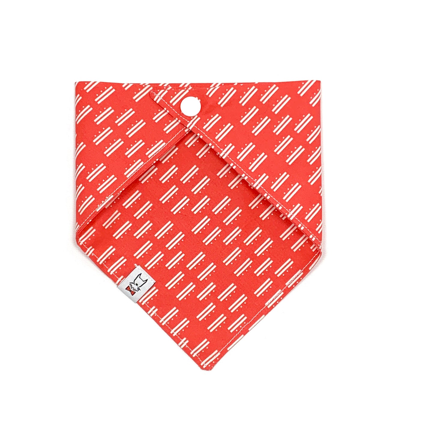 Our dog bandanas feature snaps that secure the end ties in place. Each dog bandana is top stitched and double sided. Print placement will vary for each dog bandana. Handmade with love in the U.S.A.