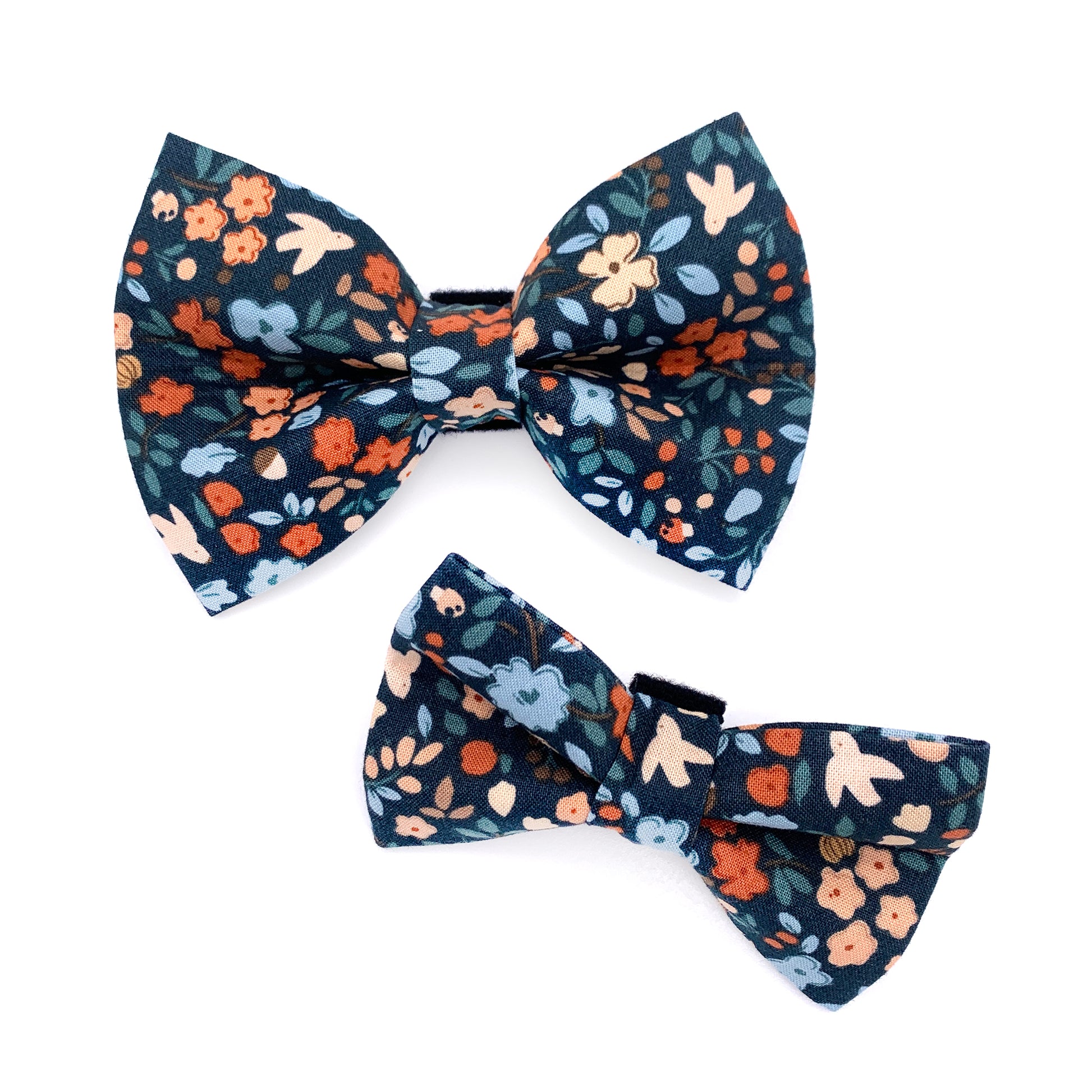 Our high quality dog bow ties are made to last. They hold their shape and can be worn multiple times for different occasions. The bow tie is made with a velcro fastening strap. The strap is also adjustable and fits collars up to 1.5" wide. You can effortlessly secure or remove the bow tie from your pet's collar without removing the collar itself!