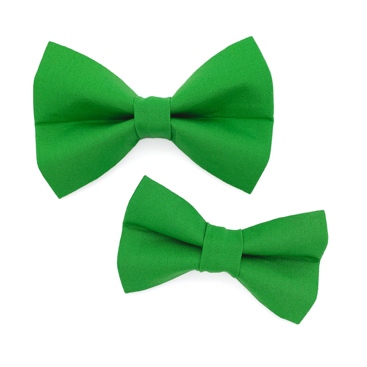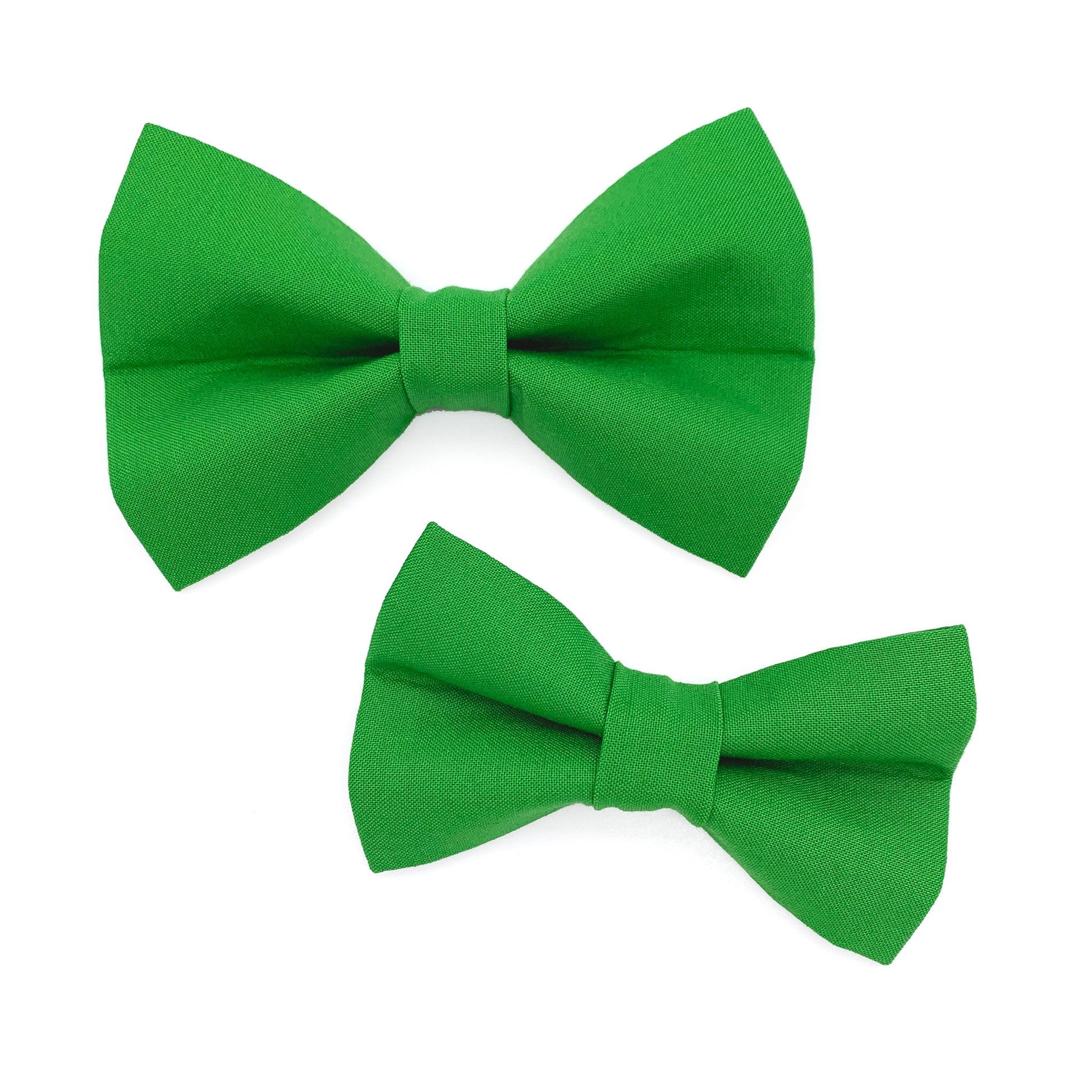 Our high quality dog bow ties are made to last. They hold their shape and can be worn multiple times for different occasions. The bow tie is made with a velcro fastening strap. The strap is also adjustable and fits collars up to 1.5" wide. You can effortlessly secure or remove the bow tie from your pet's collar without removing the collar itself!