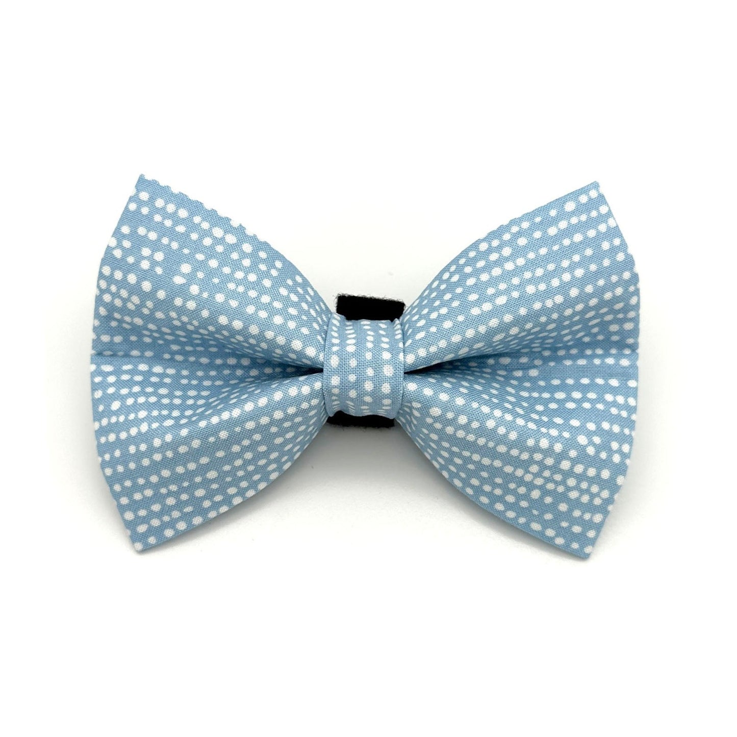 Our high quality dog bow ties are made to last. They hold their shape and can be worn multiple times for different occasions. The bow tie is made with a velcro fastening strap. The strap is also adjustable and fits collars up to 1.5" wide. You can effortlessly secure or remove the bow tie from your pet's collar without removing the collar itself!