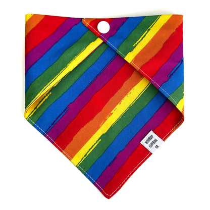 Our dog bandanas feature snaps that secure the end ties in place. Each dog bandana is top stitched and double sided. Print placement will vary for each dog bandana. Handmade with love in the U.S.A.