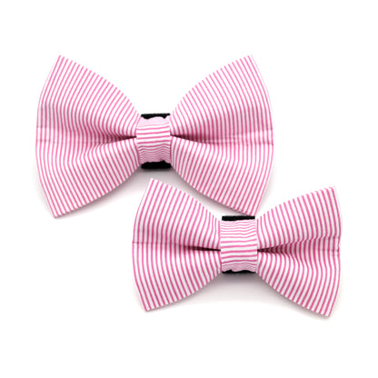 Our high quality dog bow ties are made to last. They hold their shape and can be worn multiple times for different occasions. The bow tie is made with a velcro fastening strap. The strap is also adjustable and fits collars up to 1.5" wide. You can effortlessly secure or remove the bow tie from your pet's collar without removing the collar itself!
