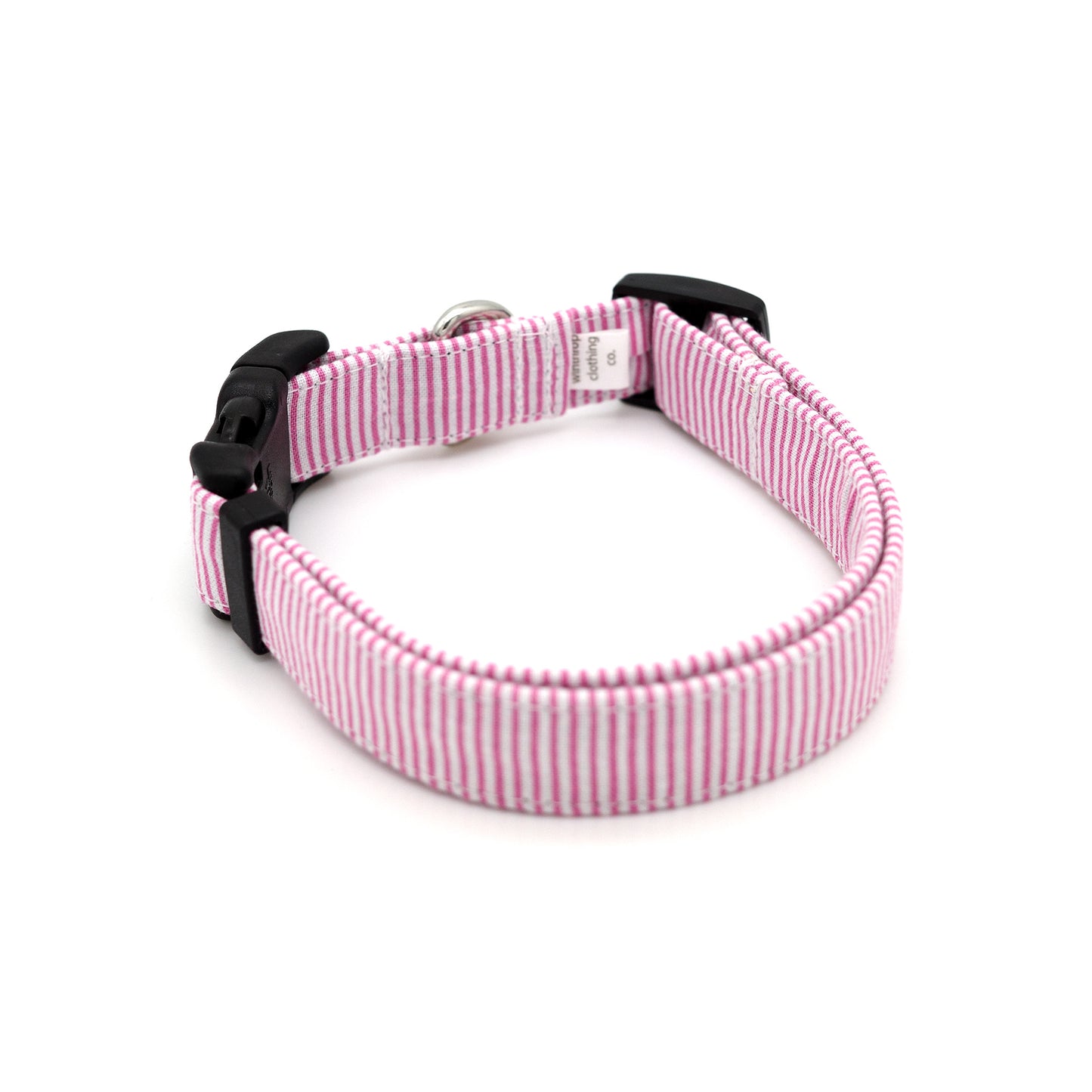 Our handmade Winthrop Clothing Co. dog collars feature a light-weight and durable all-over fabric collar with a polypropylene webbing core. They compliment a variety of our velcro bow ties and sailor bows that are easily removable from our collars.