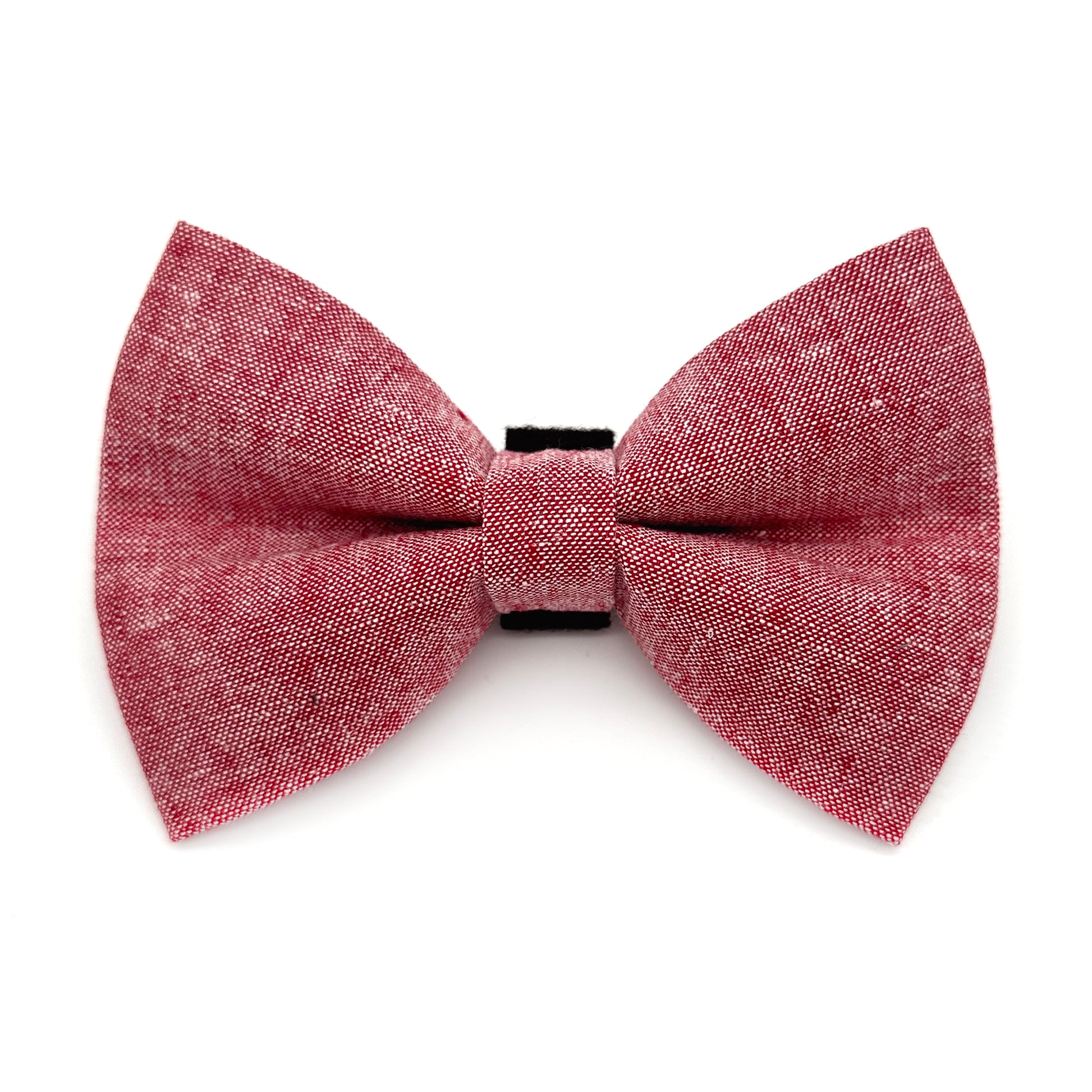 Our high quality dog bow ties are made to last. They hold their shape and can be worn multiple times for different occasions. The bow tie is made with a velcro fastening strap. The strap is also adjustable and fits collars up to 1.5" wide. You can effortlessly secure or remove the bow tie from your pet's collar without removing the collar itself!