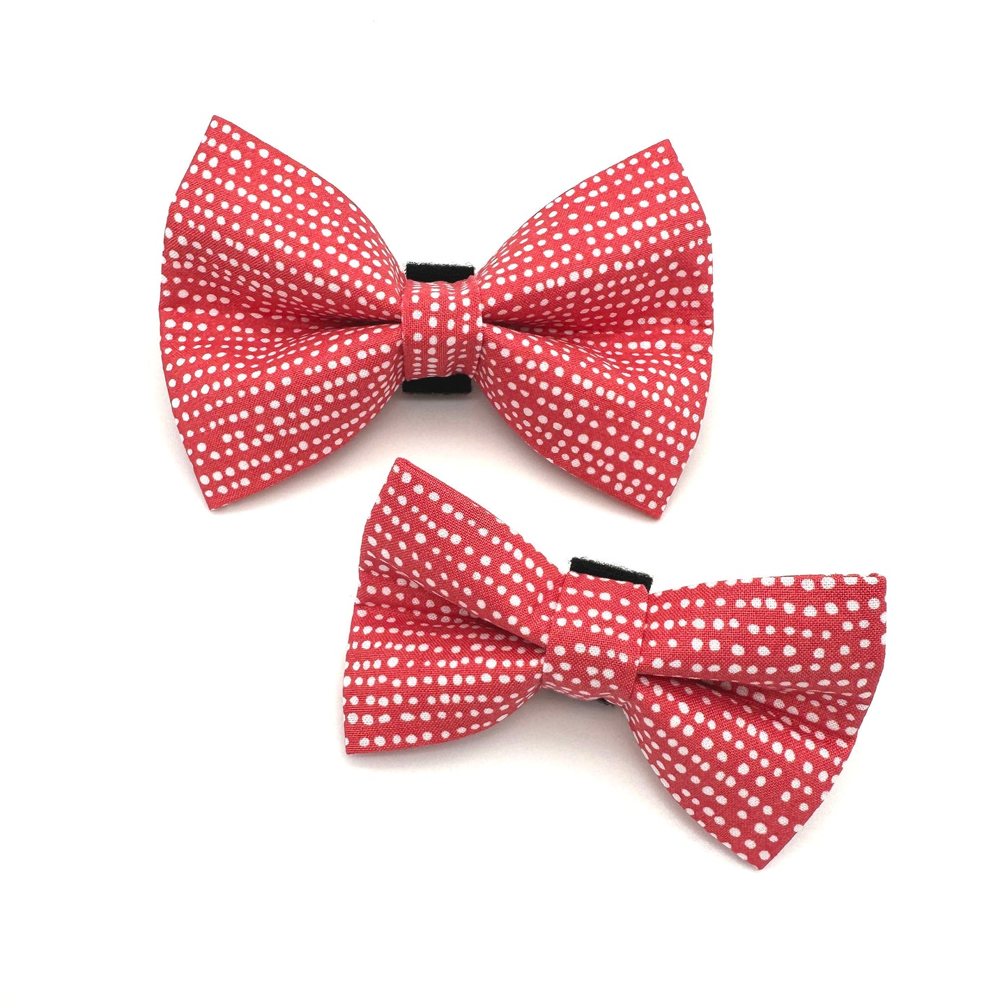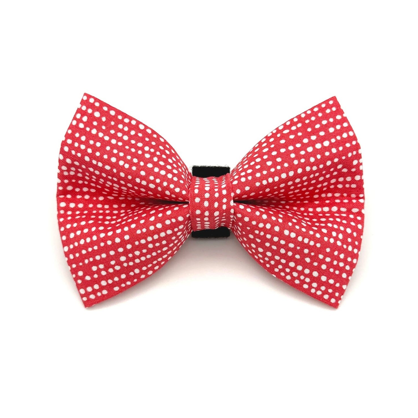 Our high quality dog bow ties are made to last. They hold their shape and can be worn multiple times for different occasions. The bow tie is made with a velcro fastening strap. The strap is also adjustable and fits collars up to 1.5" wide. You can effortlessly secure or remove the bow tie from your pet's collar without removing the collar itself!