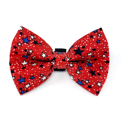 Our high quality dog bow ties are made to last. They hold their shape and can be worn multiple times for different occasions. The bow tie is made with a velcro fastening strap. The strap is also adjustable and fits collars up to 1.5" wide. You can effortlessly secure or remove the bow tie from your pet's collar without removing the collar itself!