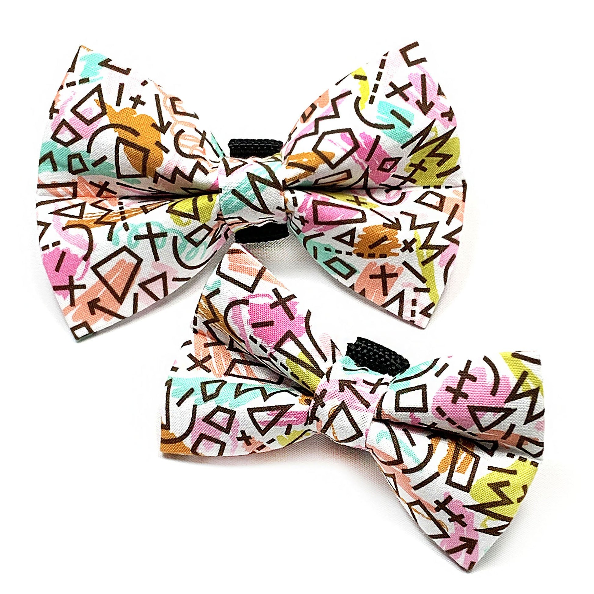Our high quality dog bow ties are made to last. They hold their shape and can be worn multiple times for different occasions. The bow tie is made with a velcro fastening strap. The strap is also adjustable and fits collars up to 1.5" wide. You can effortlessly secure or remove the bow tie from your pet's collar without removing the collar itself!