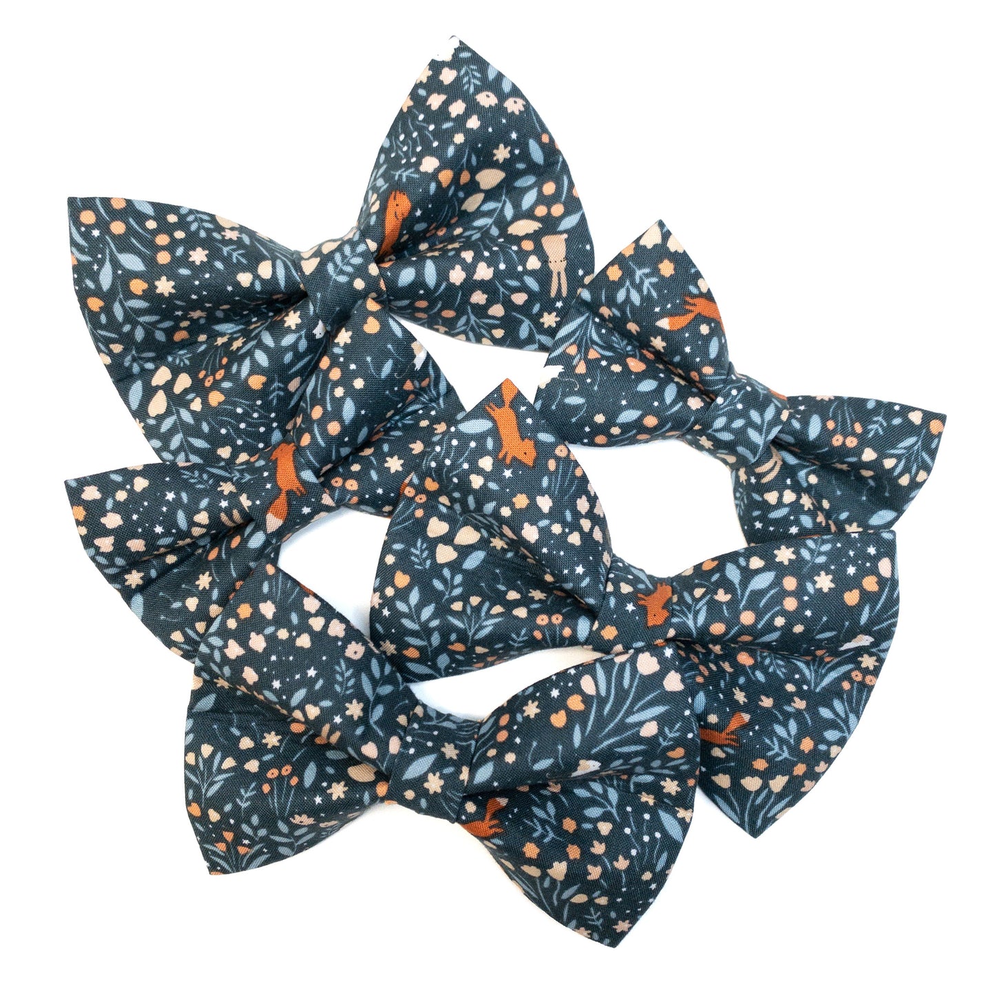 Our high quality dog bow ties are made to last. They hold their shape and can be worn multiple times for different occasions. The bow tie is made with a velcro fastening strap. The strap is also adjustable and fits collars up to 1.5" wide. You can effortlessly secure or remove the bow tie from your pet's collar without removing the collar itself!