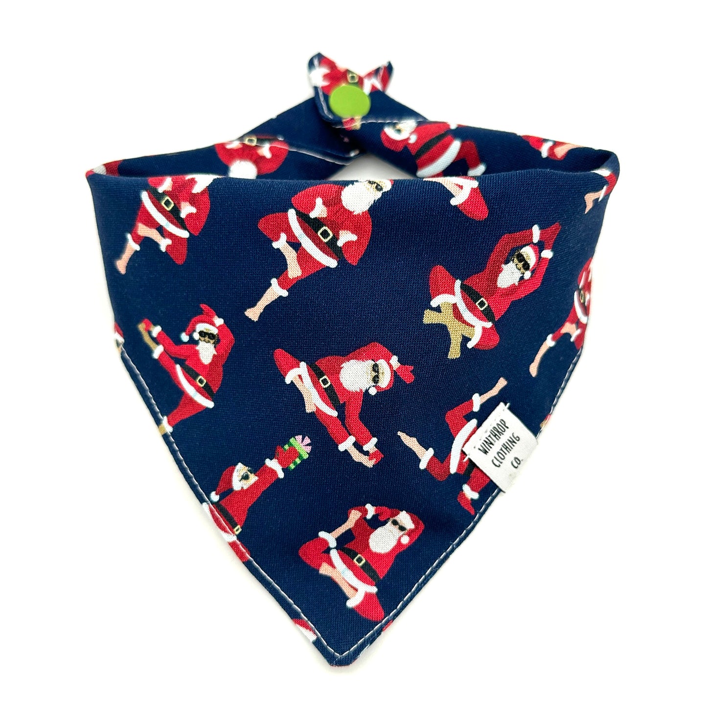 Our dog bandanas feature snaps that secure the end ties in place. Each dog bandana is top stitched and double sided. Print placement will vary for each dog bandana. Handmade with love in the U.S.A.